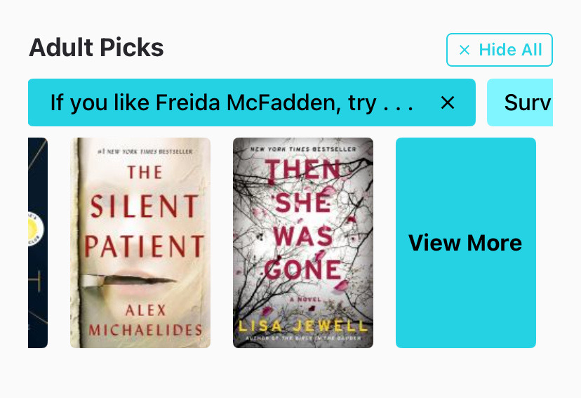 The app now features a new display for your browse categories. A "View More" option appears after the first seven titles, more easily directing patrons to view the full list or search results. Sub-categories are also scrollable buttons, more closely mirroring the display of subcategories in the web catalog.